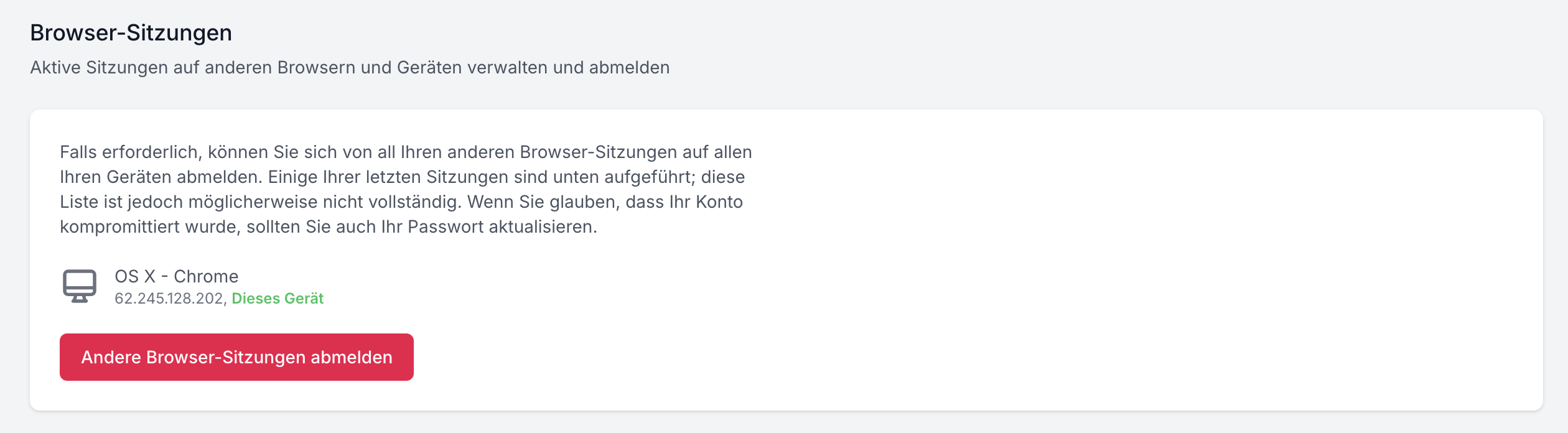 Du kannst Dich optional von allen anderen Browsersitzungen außer der auf deinem aktuellen Gerät abmelden.
