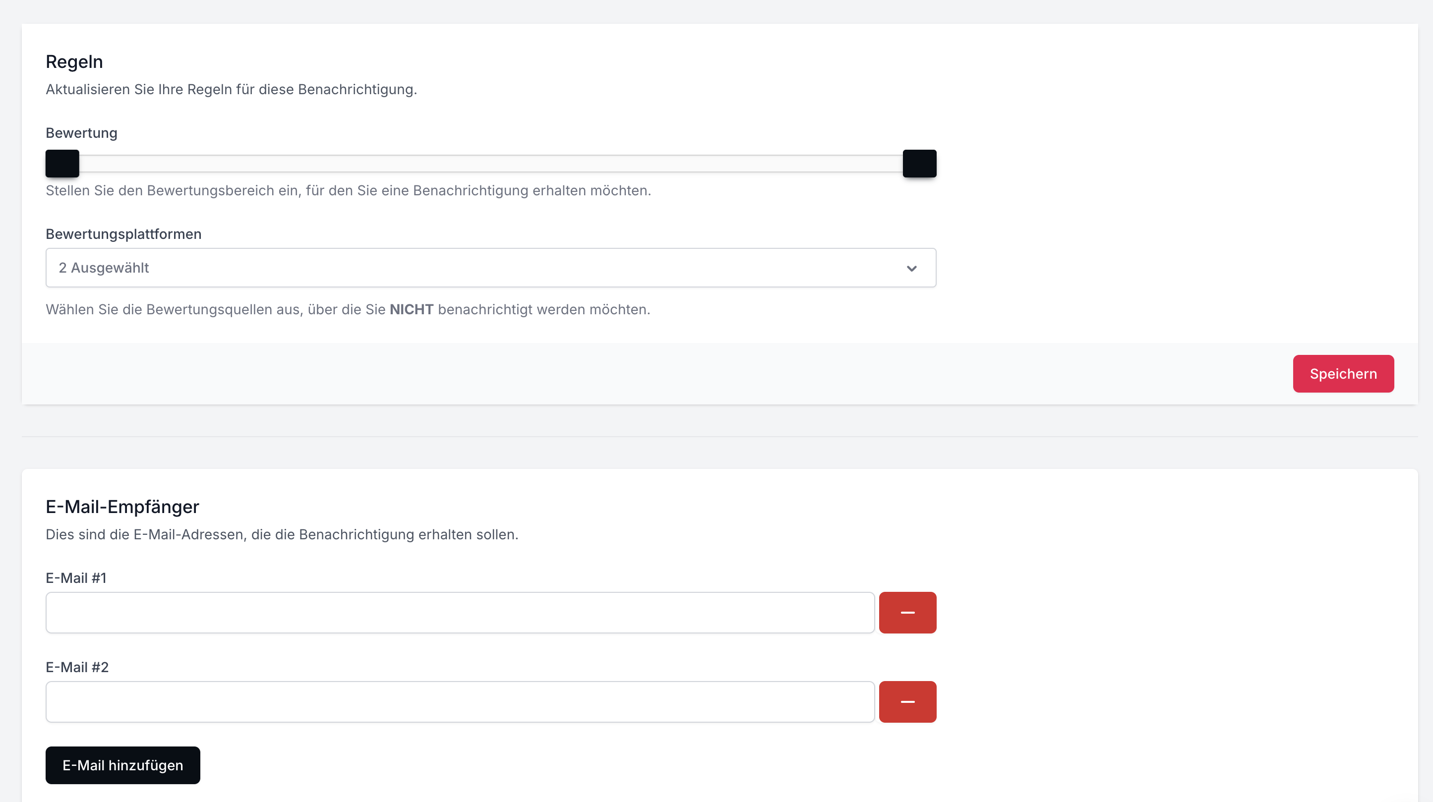 Standardmäßig senden wir Dir automatisch eine E-Mail an Deine registrierte E-Mail-Adresse, wenn Ap.cx neue Bewertungen erkennt. Du kannst jedoch festlegen, wann und an welche E-Mail-Adressen wir Benachrichtigungen senden sollen.