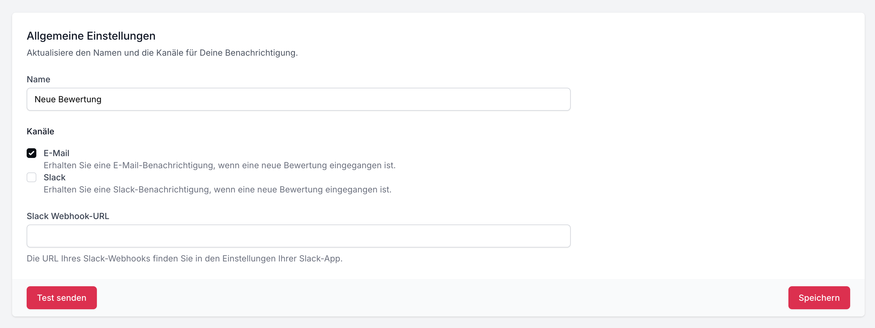 Dann kannst Du Einstellungen für neue Bewertungsbenachrichtigung vornehmen.