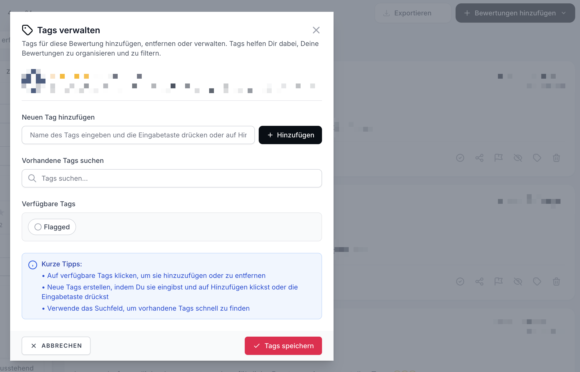 Befolge die folgenden Schritte, um Deine Bewertungen mit Tags zu versehen: