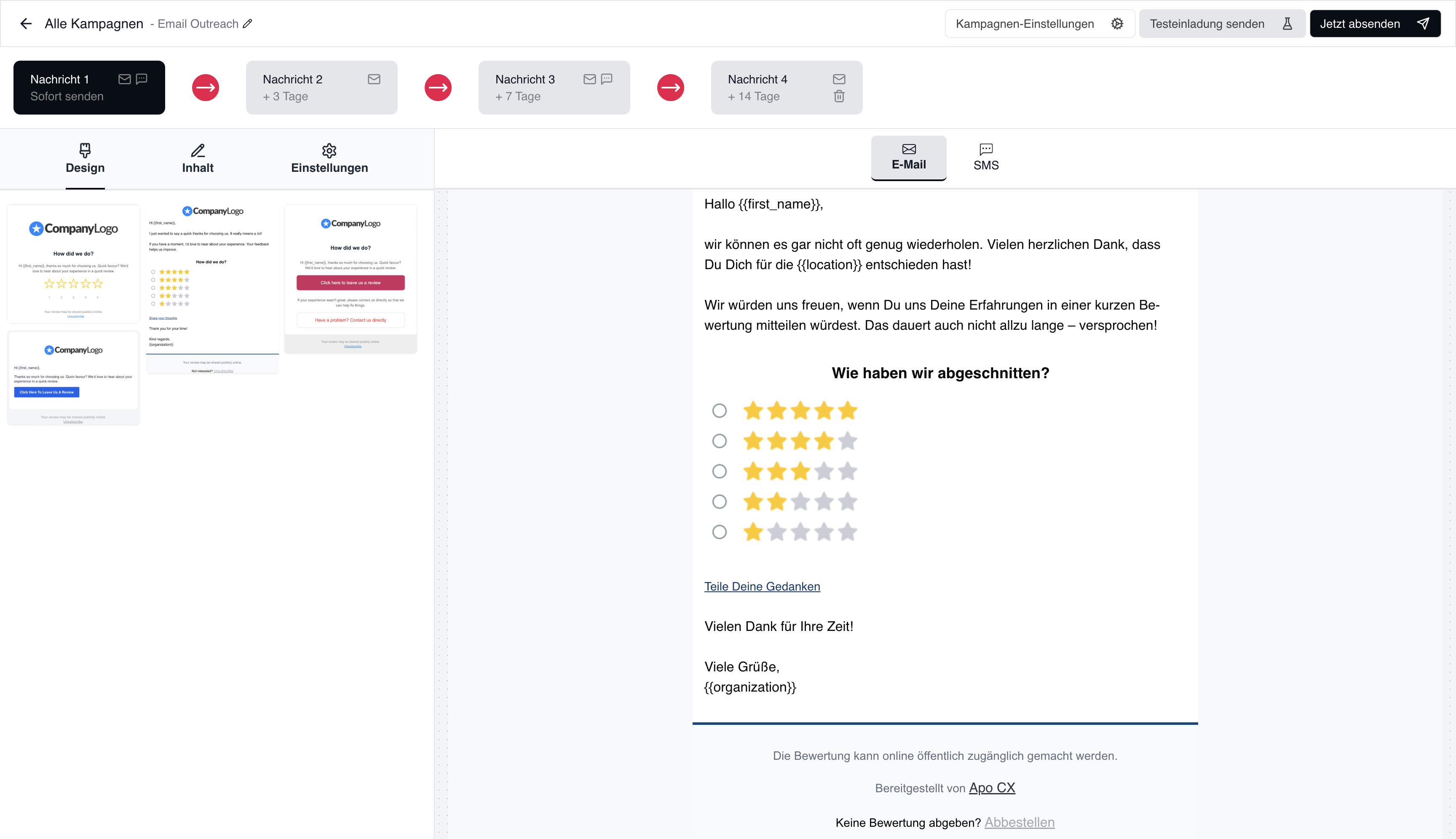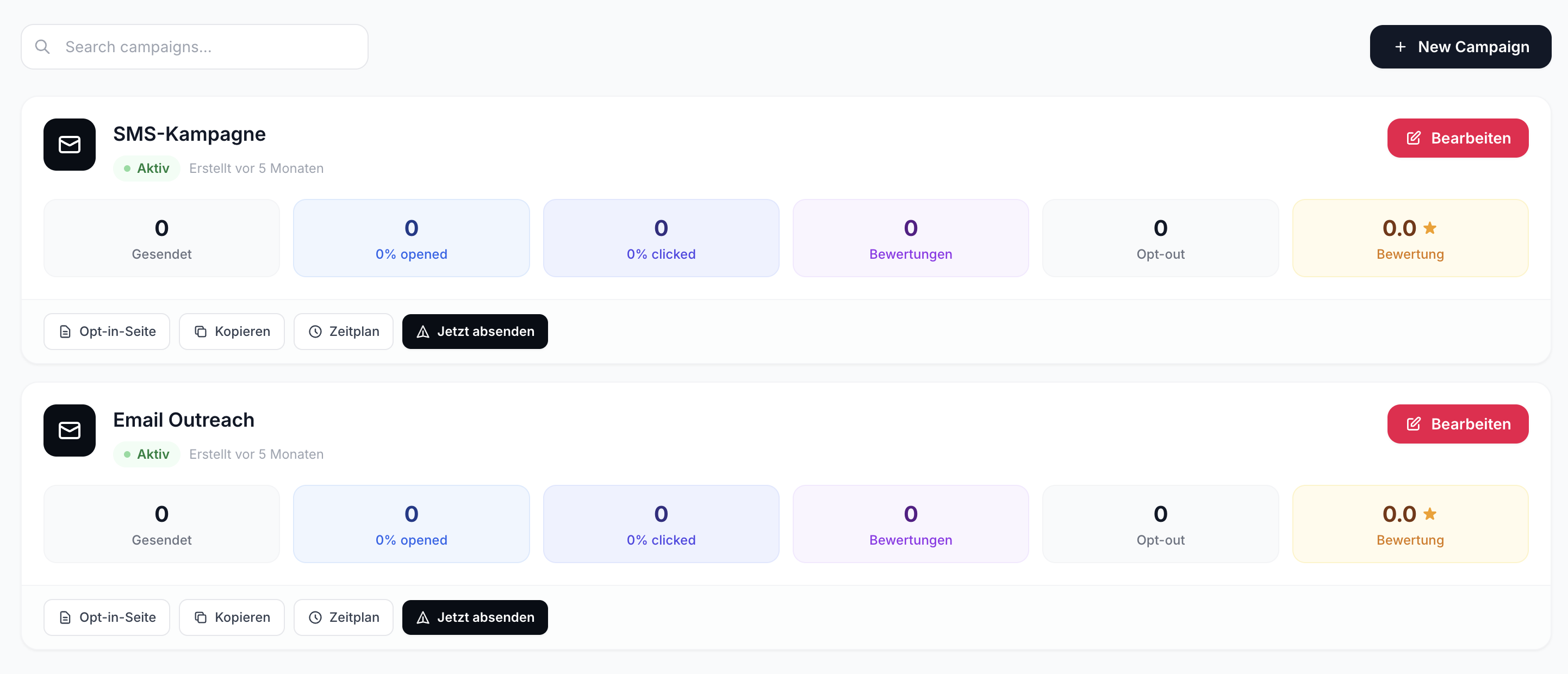 Klicke im Menü auf “Kampagnen” > “Bewertungen anfordern”.