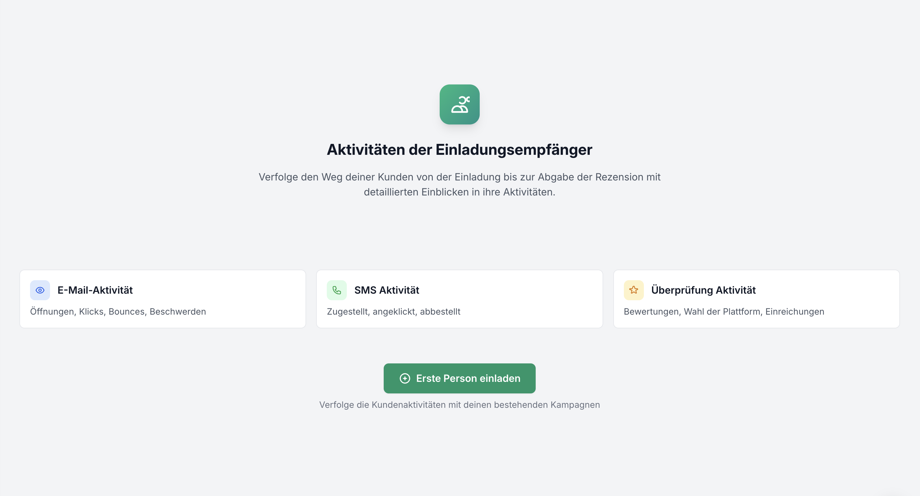 Die ersten Statistiken werden Dir angezeigt, nachdem Du Deine erste Kampagne gestartet hast und die von Dir eingeladenen Kund*innen darauf reagiert haben.