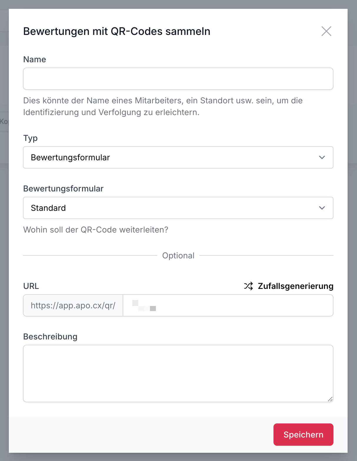 Fülle das Formular im Modal aus. Der Name und die Beschreibung dienen Dir zur besseren internen Nachverfolgung.