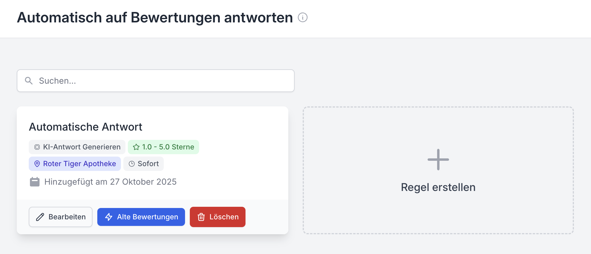 Dazu musst Du Regeln einrichten, die automatisch auf neue Bewertungen reagieren – basierend auf deren Bewertung und Inhalt.