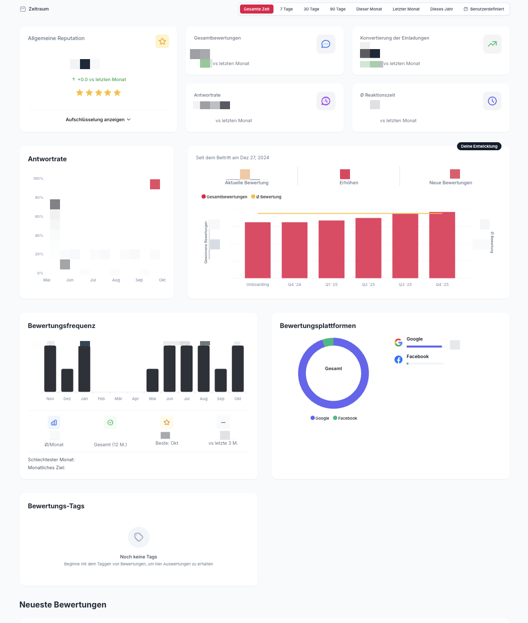 Aufschlüsselung nach Bewertungsplattformen