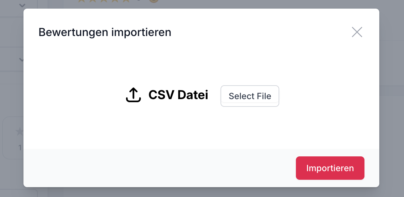 Wir haben keine besonderen Formatvorgaben an die CSV-Datei, da Du die Spalten beim Importieren der Bewertungen selbst zuordnen kannst. Diese Option ist auch nützlich, wenn Du alte Bewertungen aus einem System importieren musst, mit dem wir keine automatische Synchronisierung durchführen. Dies kann zum Beispiel Deine Website oder eine andere Quelle sein.
